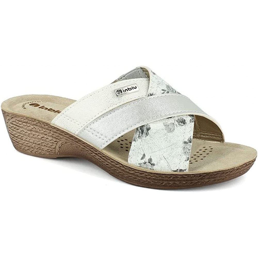 Il leggero tacco permette di mantenere la schiena in una postura corretta e la suola leggera evita inutili affaticamenti. La fascia floreale tono su tono che si intreccia alle altre abbraccia il piede in un tripudio di comodità.