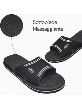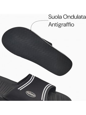 La suola, anch'essa in materiale sintetico, è progettata per offrire una buona aderenza, riducendo il rischio di scivolamenti su superfici bagnate, rendendole perfette per l'uso in ambienti come spiagge e piscine.