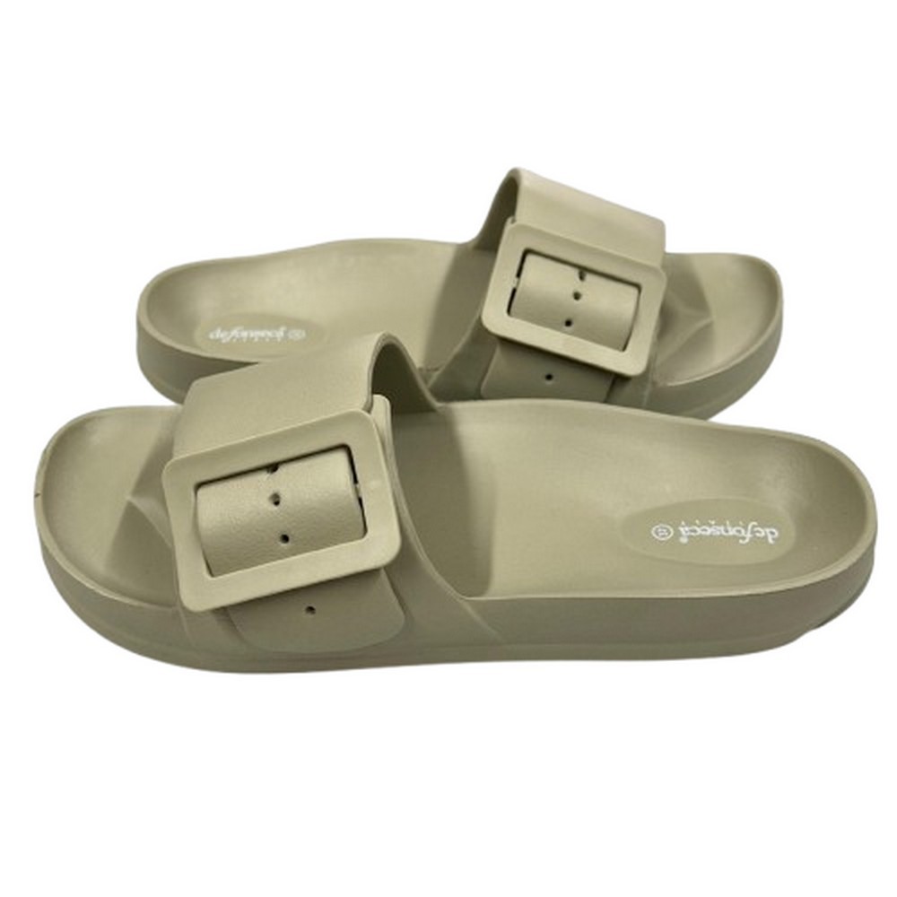 De Fonseca azienda leader italiana nel mercato della pantofoleria e della calzatura da mare, ogni anno produce e vende in tutto il mondo circa 6 milioni di calzature, in una gamma che non ha rivali, composta da oltre 500 modelli nuovi per ogni collezione, pensati per offrire comfort e praticità in ogni occasione, in casa e all'aria aperta con la stessa attenzione ad una qualità accessibile e la stessa passione per lo stile italiano da cui è cominciata questa lunga avventura. Queste ciabatte, semplici e pratiche, garantiscono un’eccellente rapidità di asciugatura e si infilano facilmente. Leggere per i tuoi piedi che possono rilassarsi completamente e non sentirsi stanchi anche dopo averli indossati tutto il giorno. La parte superiore della ciabatta è ampia e si adatta in modo eccellente alla forma del piede anche grazie alla chiusura con fibbia regolabile. Le pantofole sono caratterizzate da materiale interno ed esterno in sintetico, suola in gomma e non prevedono tacco. Le pantofole sono vendute nuove.