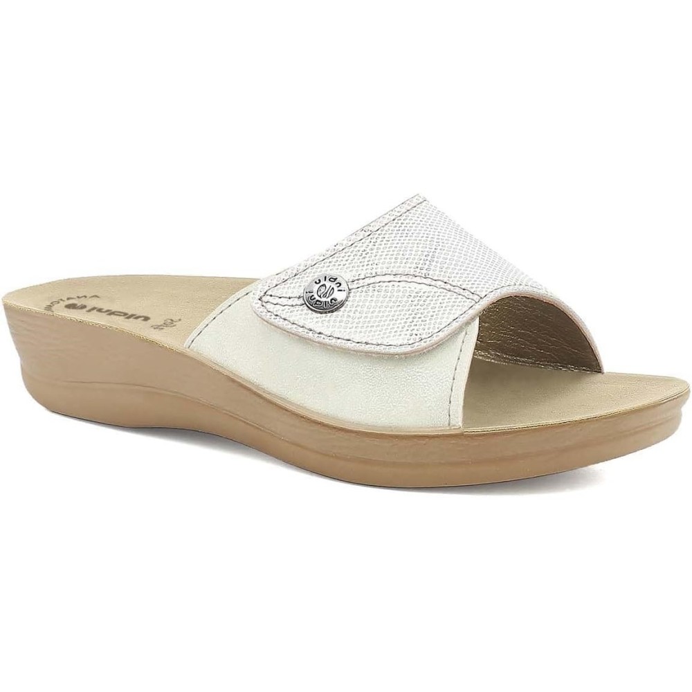 Ciabatte con chiusura regolabile con bottone laterale. La fascia superiore, caratterizzata da una texture raffinata, dona un tocco distintivo al sandalo. Perfetto per chi cerca una calzatura estiva che unisca comodità , design curato e versatilità.
