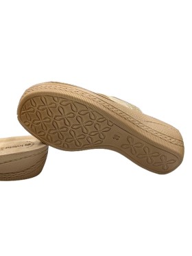 Il leggero tacco permette di mantenere la schiena in una postura corretta e la suola leggera evita inutili affaticamenti. La fascia floreale tono su tono che si intreccia alle altre abbraccia il piede in un tripudio di comodità.
