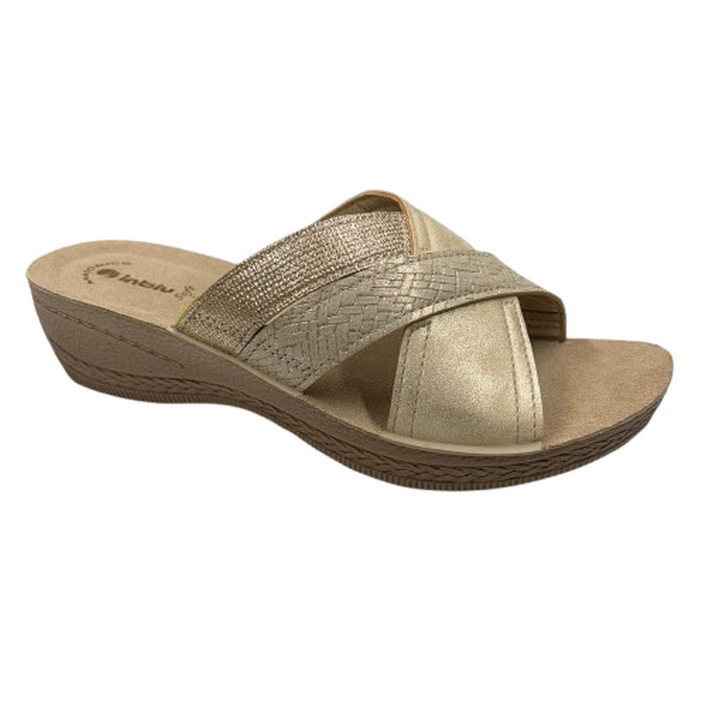 Il leggero tacco permette di mantenere la schiena in una postura corretta e la suola leggera evita inutili affaticamenti. La fascia floreale tono su tono che si intreccia alle altre abbraccia il piede in un tripudio di comodità.