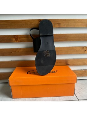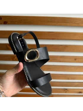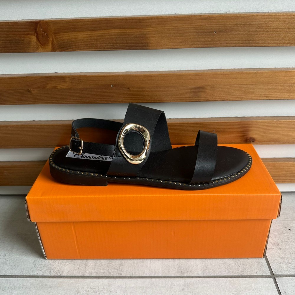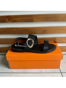 Il sandalo presenta una fascia larga sulla parte anteriore del piede e una cinghia più sottile che si avvolge intorno alla caviglia.