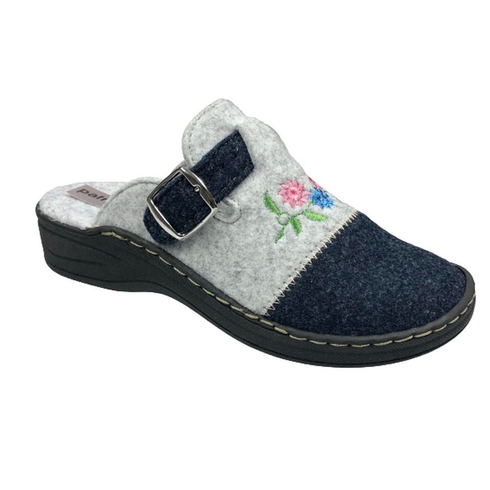 Realizzata in lana, la pantofola da donna garantisce una temperatura ottimale del piede. Andare un attimo alla cassetta postale o fare una breve passeggiata nel cortile non è un problema con queste pantofole. Mentre la suola adatta all’ esterno, leggermente rialzata, promette un aspetto sicuro.