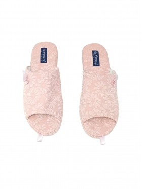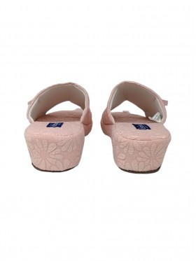 Le pantofole sono caratterizzate da un materiale esterno in tessuto, fodera interna in tessuto, suola antiscivolo in gomma, non è prevista chiusura ed ha una zeppa alta circa 4 cm.