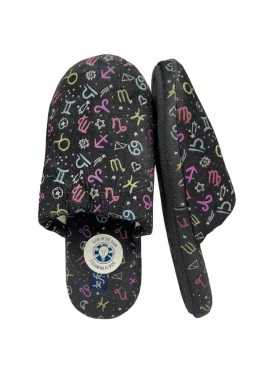 Le pantofole invernali da donna de Fonseca sono pensate per offrire comfort quotidiano e un tocco di stile anche in casa. Realizzate con tessuto morbido e caldo, avvolgono il piede donando una piacevole sensazione di relax durante la stagione fredda. Il design presenta una fantasia vivace con simboli zodiacali colorati, perfetta per chi ama dettagli originali e moderni. Grazie alla suola antiscivolo, assicurano stabilità su diversi tipi di pavimentazione, rendendole ideali per l’uso quotidiano.