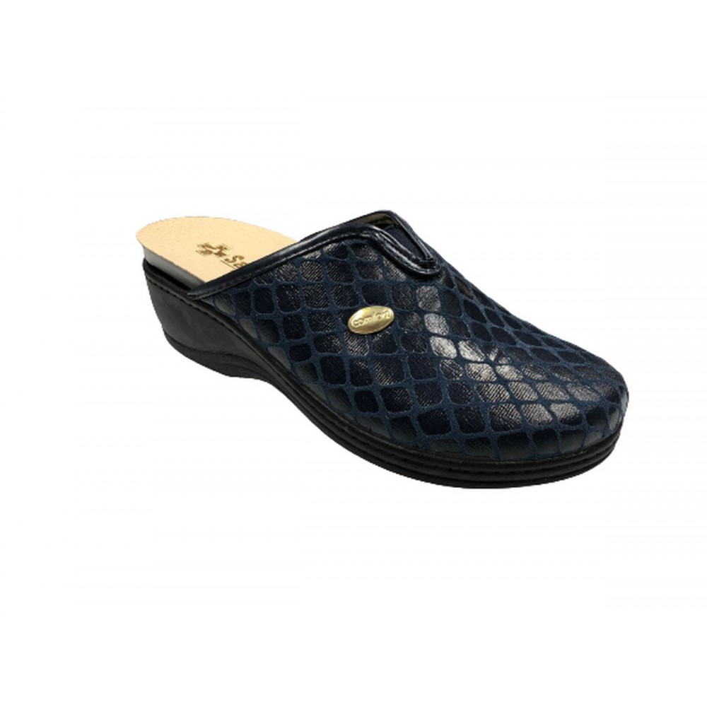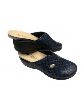 Pantofola donna con plantare anatomico marca Sani Walk. Sottopiede estraibile in pelle, tomaia fantasia pitone con elastico sul collo piede per una ottima calzata, anche per coloro che hanno il collo piede pronunciato. Suola ecologica, anatomica, leggera ed antishock. Altezza tacco 4.5 cm - MADE IN ITALY