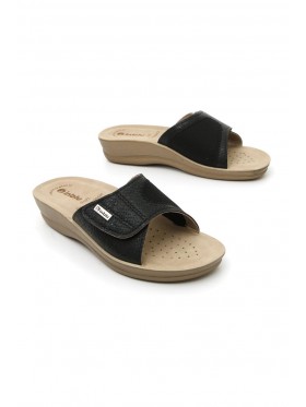 Ciabatta a fascia con pratica regolazione a strappo, per avere sempre la calzata su misura per te. La suola antishock e il morbido plantare imbottito donano il massimo comfort ad ogni tuo passo. Praticità e comodità: che bello indossare queste ciabatte per tutto il giorno.