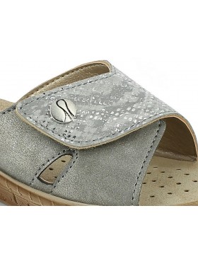 Ciabatta mono fascia regolabile grazie alla chiusura a strappo. plantare imbottito in VERA PELLE, per darti la comodità che meriti. L'inserto animalier illumina questa ciabatta, che riflette in modo delicato la luce.