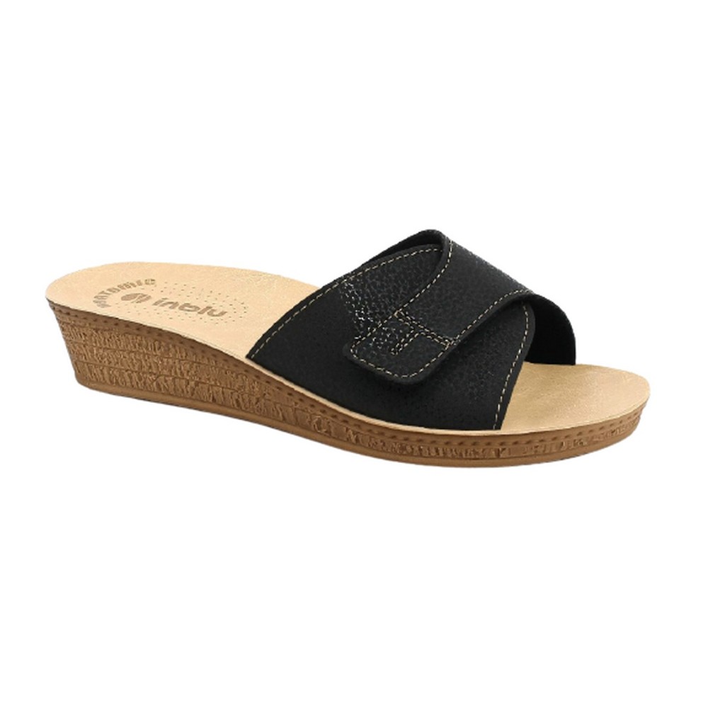Ciabatta mono fascia regolabile grazie alla chiusura a strappo. Sottopiede in sintetico con pianta anatomica, montata su suola bassa. L'inserto animalier illumina questa ciabatta, che riflette in modo delicato la luce.