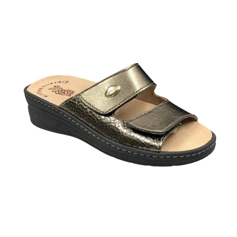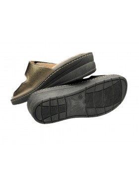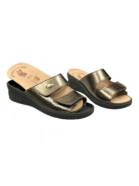 La calzatura è dotata di un plantare anatomico estraibile realizzato in vera pelle: se le necessità lo richiedono, lo si può togliere ed inserire nell’alloggiamento interno un plantare ortopedico personalizzato. Questa ciabatta è pensata per un certo tipo di clientela che necessita calzature confortevoli da indossare in ambito domestico o lavorativo, che rispettino l’anatomia del piede anche in presenza di piccole irregolarità e si adattino facilmente permettendo così una sensazione di defaticamento, di sostegno su tutto l’arco plantare ed un effetto di attenuazione dell’impatto con il suolo. La suola di queste ciabatte ergonomiche è prodotta in gomma antiscivolo in modo da essere leggera, flessibile, ammortizzante e con una buona adesione a diversi tipi di terreno. Questo modello è provvisto di due chiusure a strappo in grado di adattarsi a qualsiasi forma del piede.