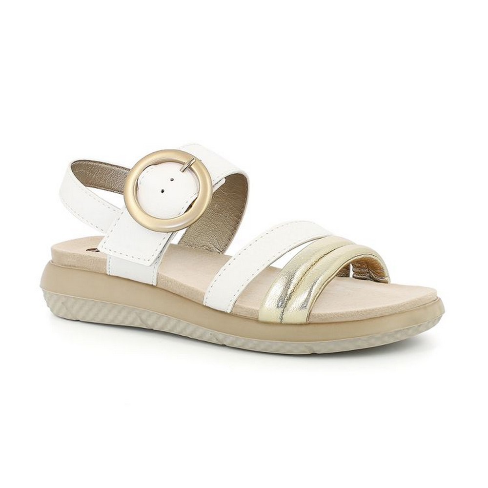 Sandali con tomaia morbida e fibbia dorata tonda. Hanno un morbido plantare in tessuto. Modello semplice e confortevole: hanno una suola leggerissima e resistente