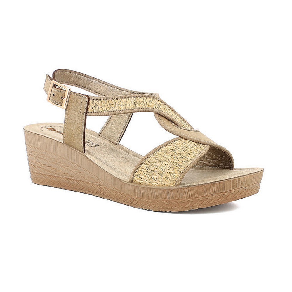 Sandali con zeppa ingentilita dal plareau. La suola è leggerissima, mentre il plantare imbottito in vera pelle li rende comodissimi.