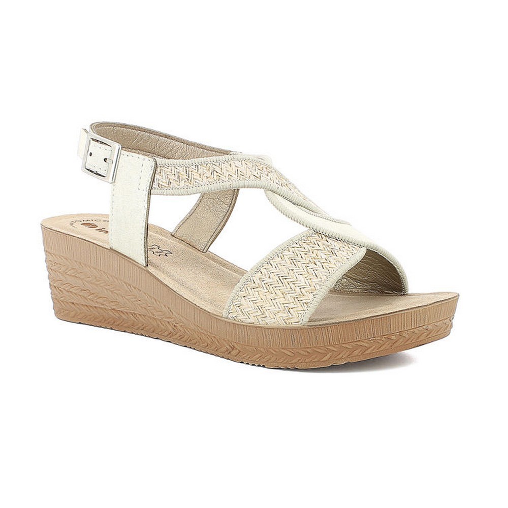 Sandali con zeppa ingentilita dal plareau. La suola è leggerissima, mentre il plantare imbottito in vera pelle li rende comodissimi.