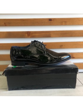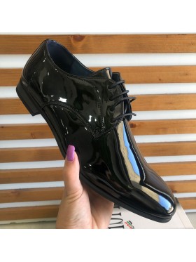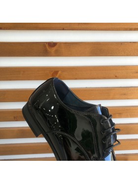 Raffinata e decisa,ridefinisce il concetto di eleganza maschile. Realizzata in vernice nera lucida, con linee pulite e lacci tono su tono, questa derby è perfetta per cerimonie e serate formali. Il comfort è garantito,il design minimalista la rende un must-have per chi ama distinguersi con discrezione.